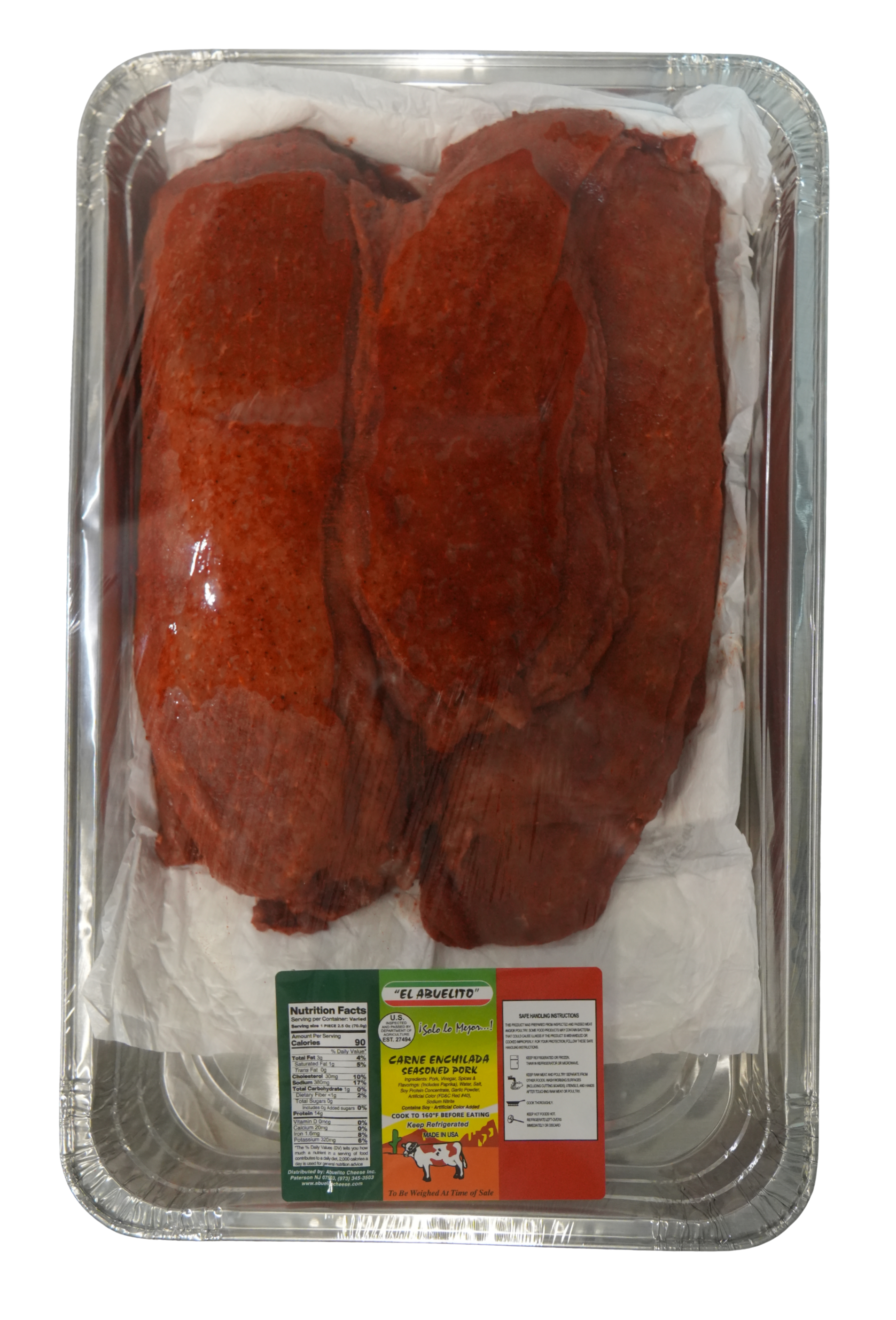 Sliced pork steak seasoned with a mix of spices and chiles. It is an excellent choice for tacos, or served in a colorful dish with rice and beans.